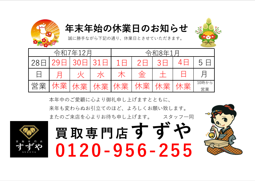 大阪茨木市で金・貴金属・ダイヤ・ブランド品・ブランド時計を売るなら「買取専門店すずや」